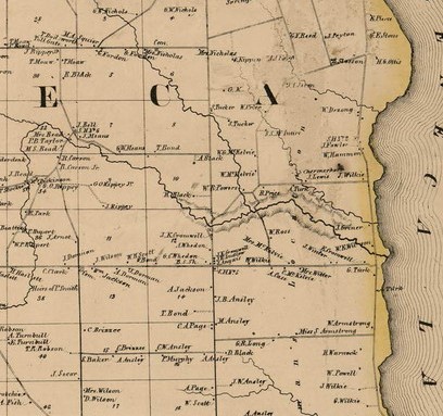 That same route, from Geneva to Penn Yan on the Pre-Emption Road, caused much trepidation and complaining a decade before, for a section of the road that goes unnoticed by drivers today. In the June 27, 1826, edition of the Yates Republican, the editor complained about Cromwell’s Hill, “situated about halfway between Geneva and Bellona.” This road, on this hill, which he called “formidable, narrow and dangerous,” he moaned, made the otherwise safe trip between the two communities fraught with hazard. “Carriages have been upset, lives endangered, and bones broken in descending and ascending this steep, crooked and narrow defile,” he wrote. Although nowhere on Pre-Emption Road meets this description today, the tiny crossroads community of Cromwell’s Hollow, sometimes called Billsboro, is likely where he is referencing. A small collection of houses near the Pre-Emption and Billsboro intersection, Cromwell’s Hollow sits just south of a dip in the road that crosses Wilson Creek near the western end of Snell Road. The hill that creates this valley, although barely noticeable today, was graded over the years to make it less hazardous to travelers. The editor did finish his article by stating with satisfaction that work was being done to make it more level.